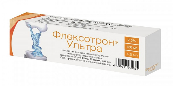 Флексотрон Ультра средство для внутрисуставного введения шприц 2,5%, 25мг/мл, 4,8мл шприц 1шт в наличии. Узнайте, как купить товар с бесплатной доставкой по Набережным Челнам, Набережночелнинскому городскому округу на странице «