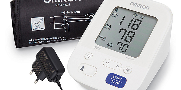 Прибор оснащен специальной технологией энергосбережения. Благодаря ей, одного набора батареек хватит примерно на 1000 измерений давления без замены источника питания. Сетевой адаптер Omron HHP-CM01 входит в комплект поставки.